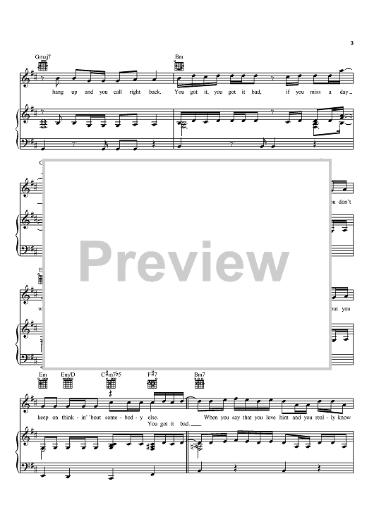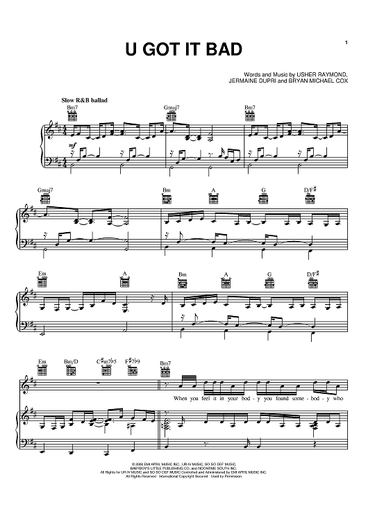 Digital Sheet Music for U Got It Bad by Usher, Jermaine Dupri, Bryan-Michael Cox scored for Piano/Vocal/Chords; id:368841