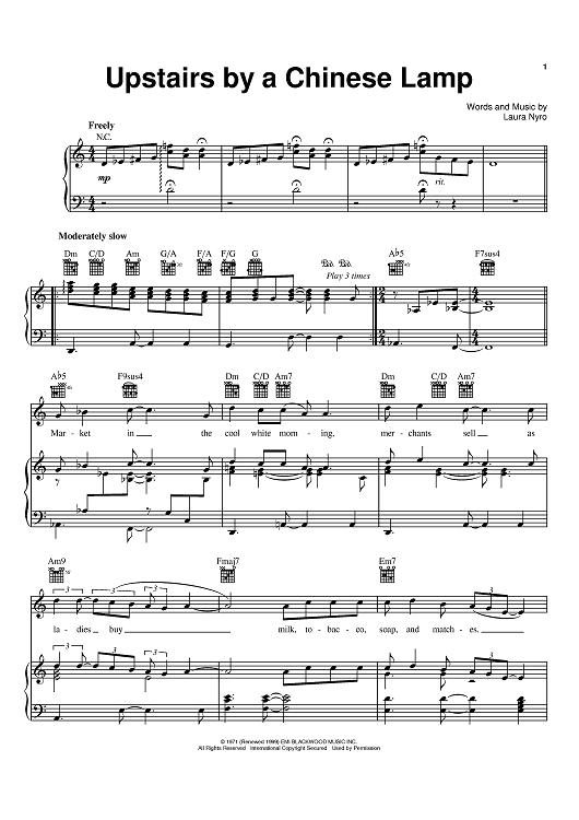 Digital Sheet Music for Upstairs By A Chinese Lamp by Laura Nyro scored for Piano/Vocal/Chords; id:369415
