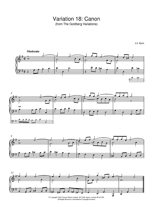 Digital Sheet Music for Variation 18: Canon (from The Goldberg Variations) by Johann Sebastian Bach scored for Piano; id:378882