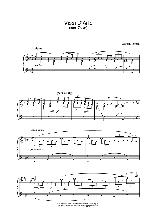 Digital Sheet Music for Vissi D'Arte (from Tosca) by Giuseppe Giacosa, Luigi Illica, Giacomo Puccini scored for Piano; id:388082