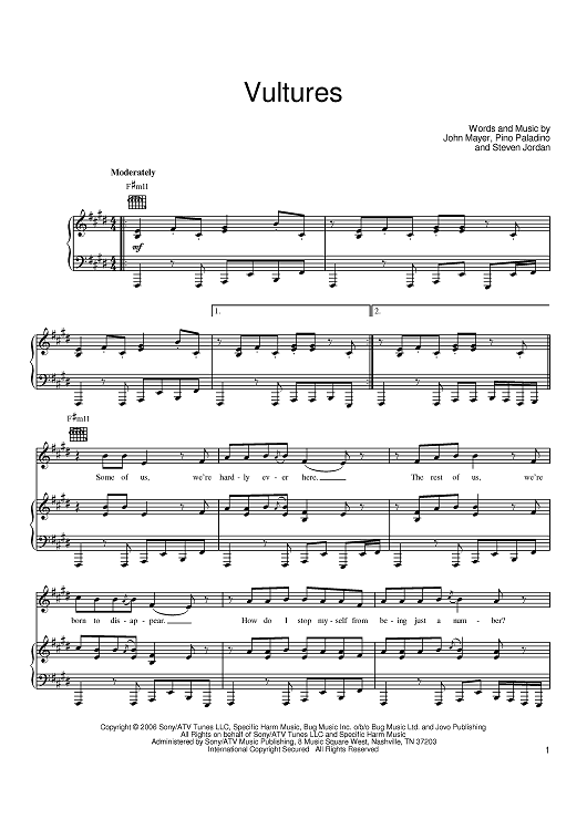 Digital Sheet Music for Vultures by Steven Jordan, Pino Palladino, John Mayer scored for Piano/Vocal/Chords; id:396103