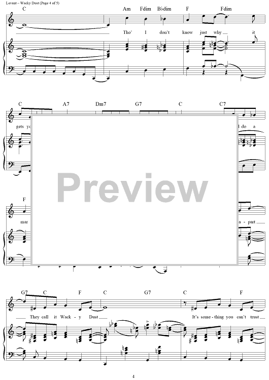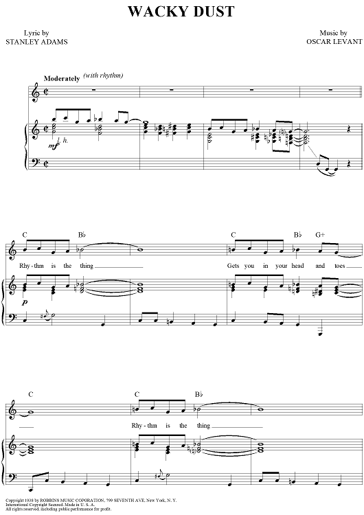 Digital Sheet Music for Wacky Dust by Ella Fitzgerald, Stanley Adams, Oscar Levant scored for Piano/Vocal/Chords; id:416111