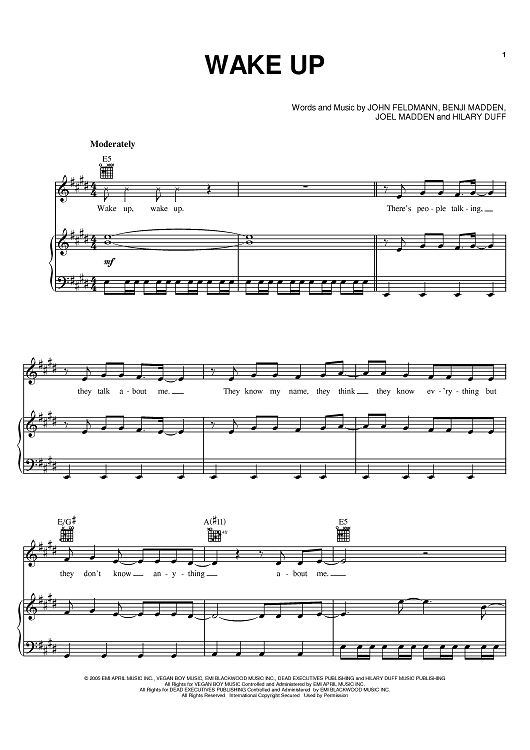 Digital Sheet Music for Wake Up by Benji Madden, Joel Madden, John Feldmann, Hilary Duff scored for Piano/Vocal/Chords; id:386093