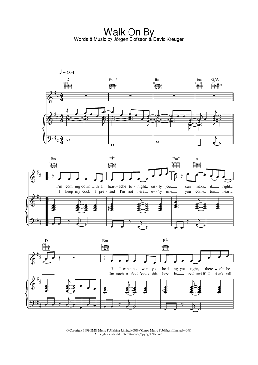 Digital Sheet Music for Walk On By by Jörgen Elofsson, David Kreuger, Gareth Gates scored for Piano/Vocal/Chords; id:377752