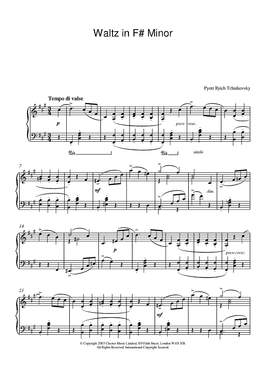 "Waltz in F# Minor" Sheet Music by Peter Ilyich Tchaikovsky
