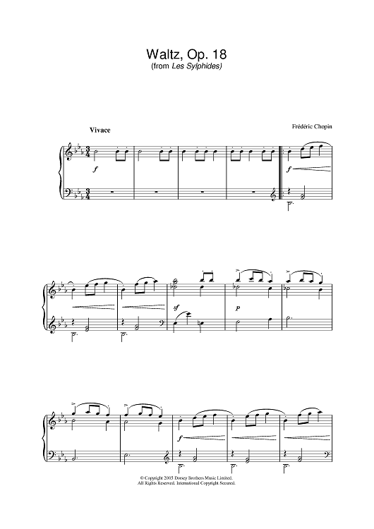 Digital Sheet Music for Waltz Op.18 (from Les Sylphides) by Frederic Chopin scored for Piano; id:390803