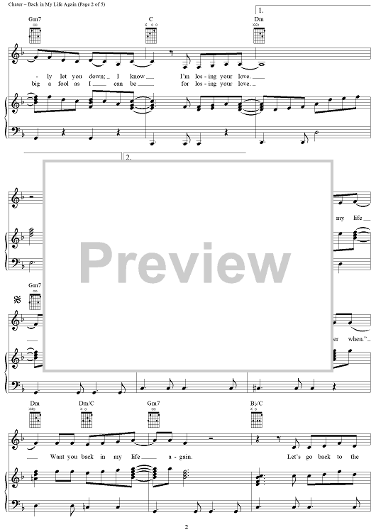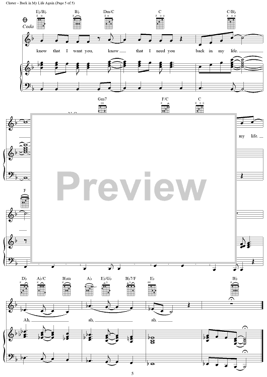 "(Want You) Back in My Life Again" Sheet Music by The Carpenters