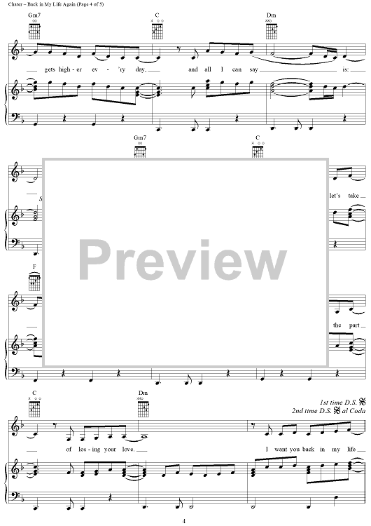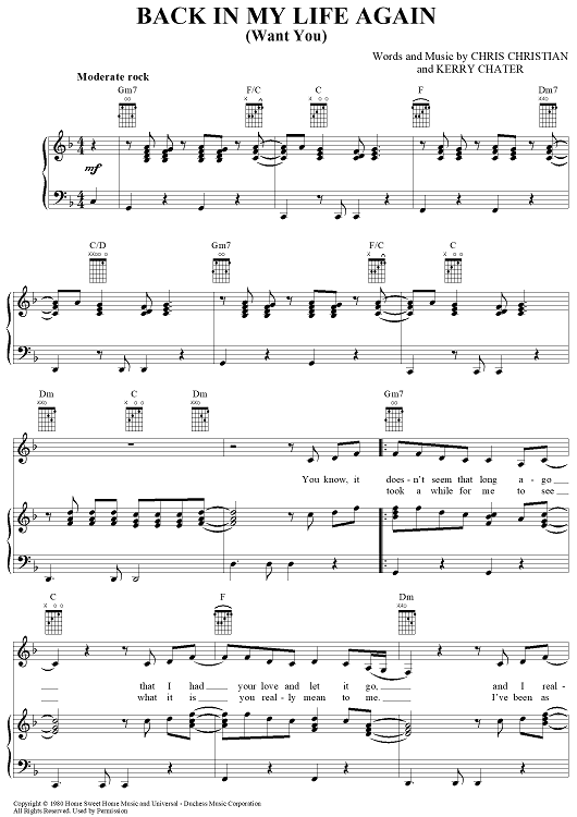 Digital Sheet Music for (Want You) Back in My Life Again by The Carpenters, Kerry Chater, Chris Christian scored for Piano/Vocal/Chords; id:395394