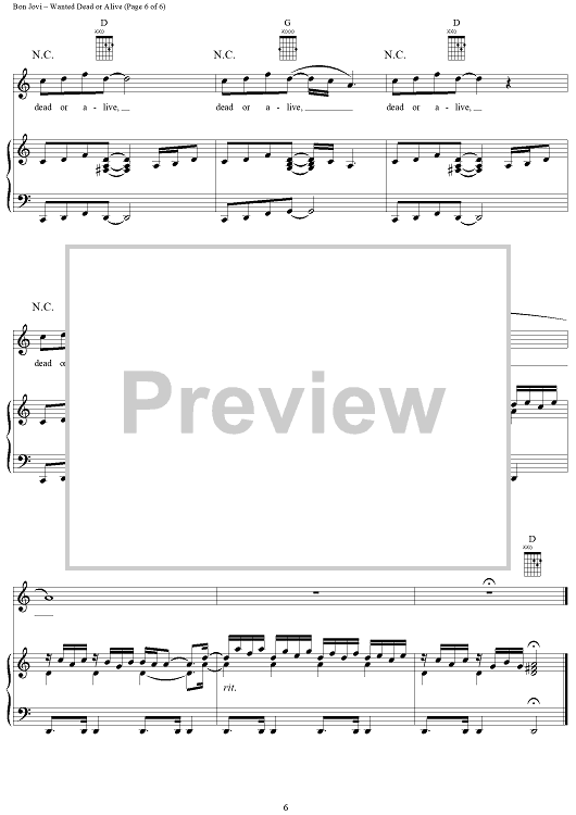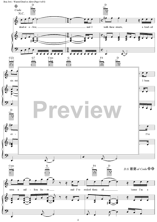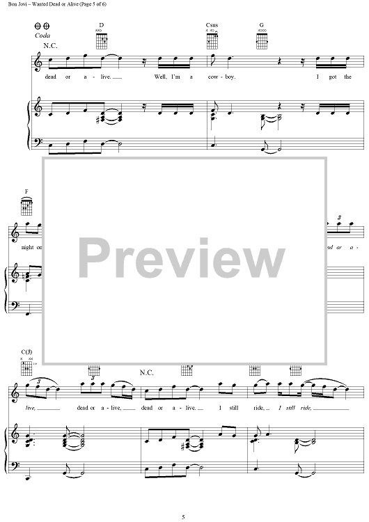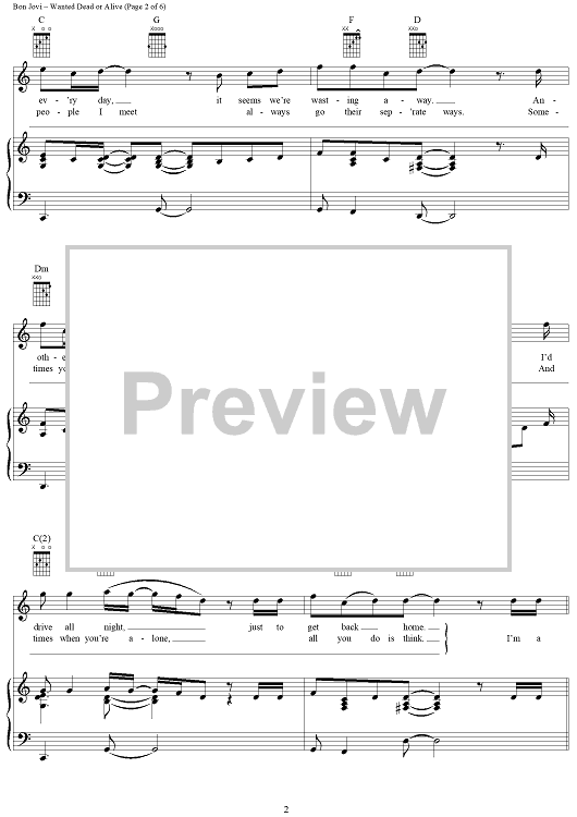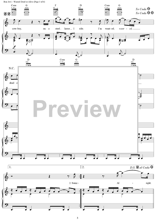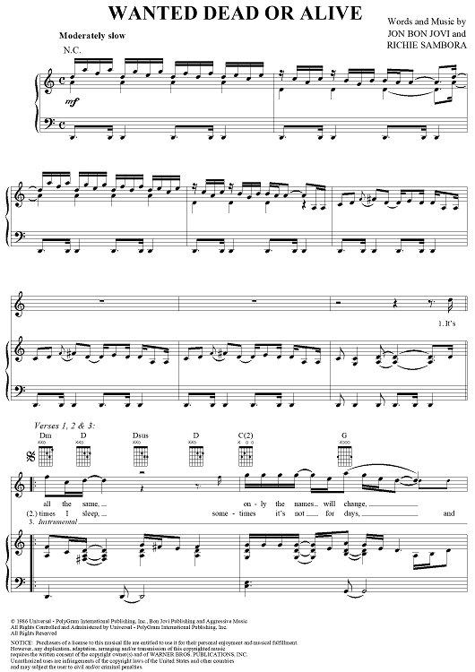 Digital Sheet Music for Wanted Dead or Alive by Bon Jovi, Richie Sambora, Jon Bon Jovi scored for Piano/Vocal/Chords; id:293334