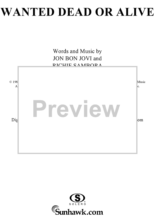 "Wanted Dead or Alive" Sheet Music by Bon Jovi