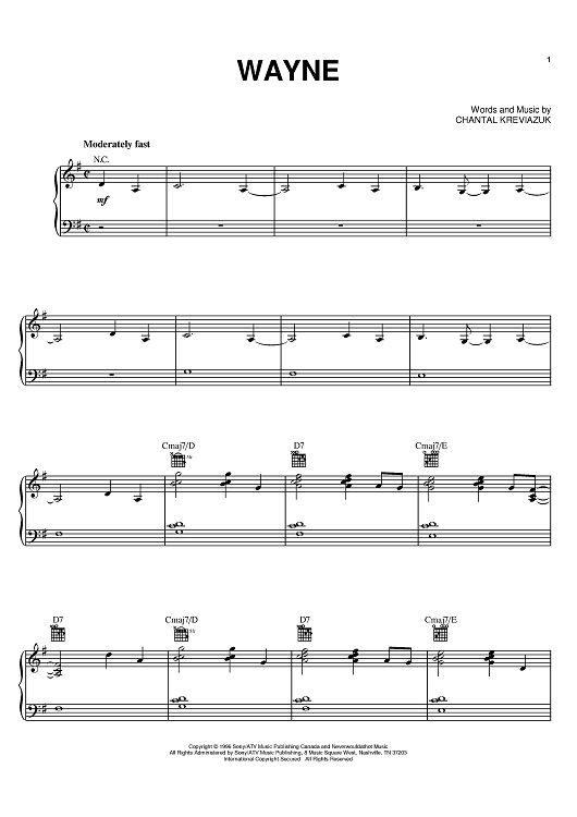 "Wayne" Sheet Music by Chantal Kreviazuk