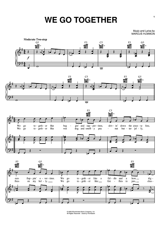 Digital Sheet Music for We Go Together by Marcus Hummon, Little Big Town scored for Piano/Vocal/Chords; id:395517