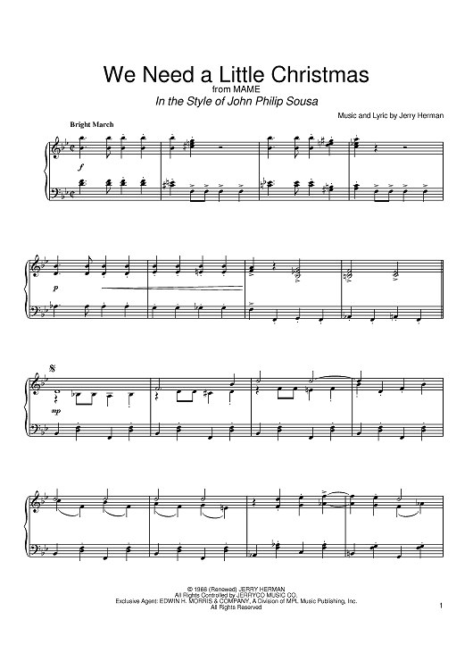 Digital Sheet Music for We Need A Little Christmas by Jerry Herman, David Pearl scored for Piano; id:391447