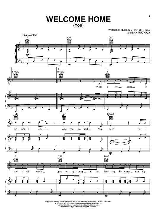 Digital Sheet Music for Welcome Home (You) by Brian Littrell, Dan Muckala scored for Piano/Vocal/Chords; id:393575