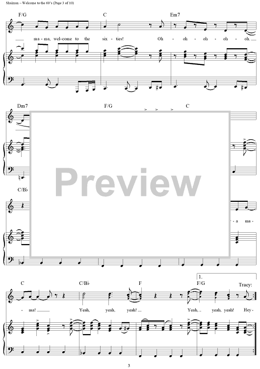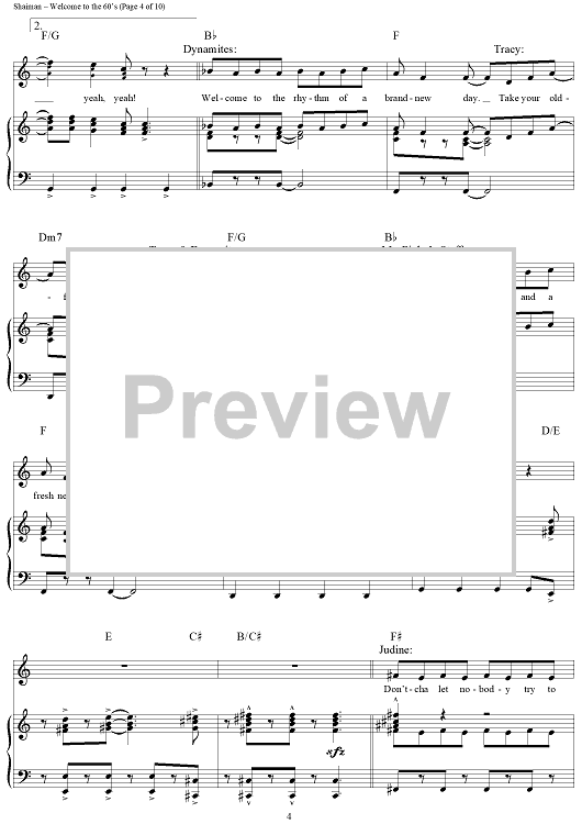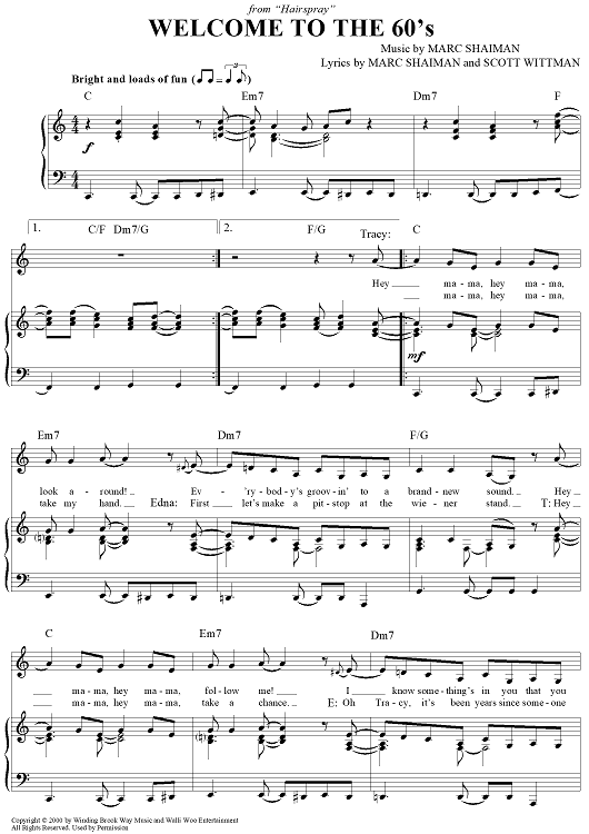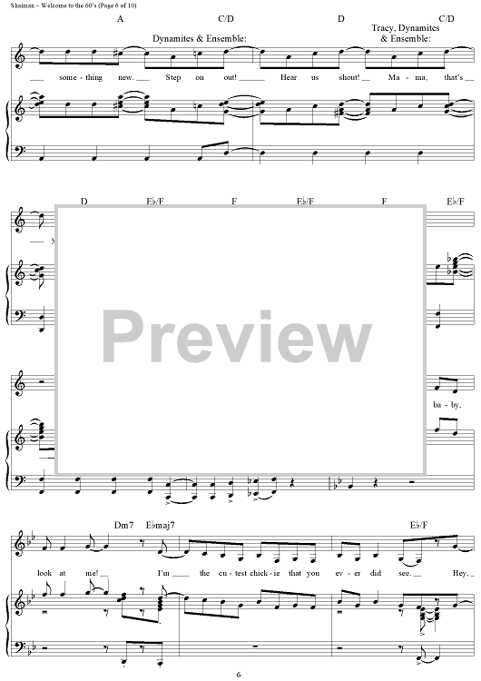 Digital Sheet Music for Welcome to the 60's by Marc Shaiman, Scott Wittman scored for Piano/Vocal/Chords; id:363068