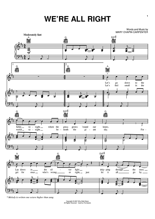 Digital Sheet Music for We're All Right by Mary Chapin Carpenter scored for Piano/Vocal/Chords; id:397773