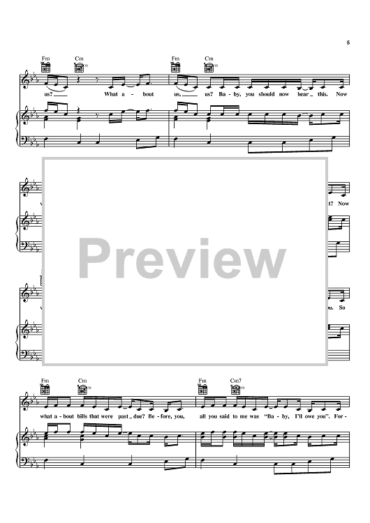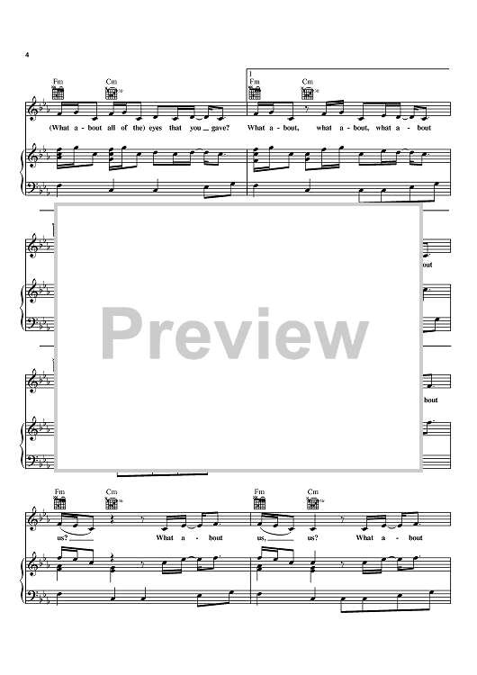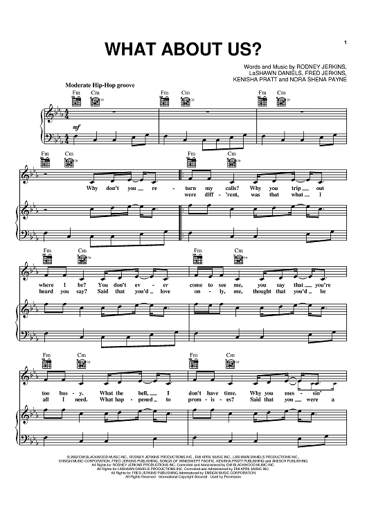 Digital Sheet Music for What About Us? by LaShawn Daniels, Fred Jerkins III, Brandy, Kenisha Pratt scored for Piano/Vocal/Chords; id:368896