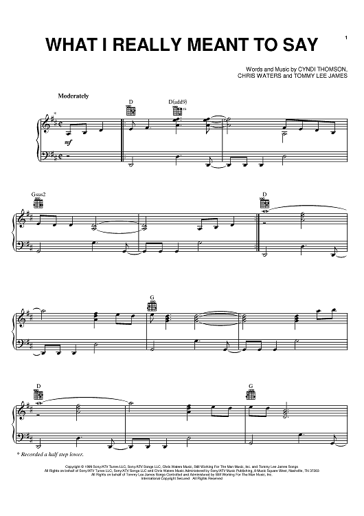 Digital Sheet Music for What I Really Meant To Say by Chris Waters, Tommy Lee James, Cyndi Thomson scored for Piano/Vocal/Chords; id:368577