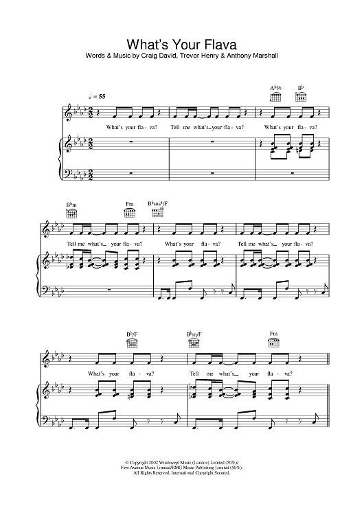 Digital Sheet Music for What's Your Flava by Craig David, Trevor Henry, Anthony Marshall scored for Piano/Vocal/Chords; id:377889