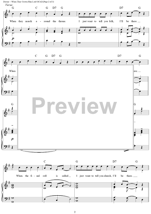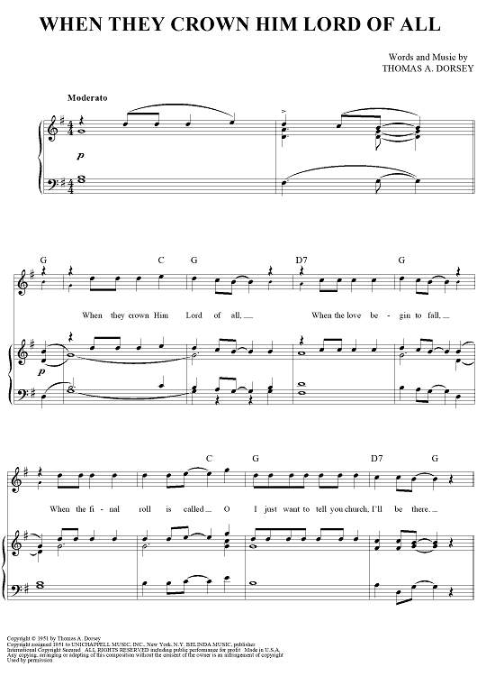 Digital Sheet Music for When They Crown Him Lord Of All by Thomas A. Dorsey scored for Piano/Vocal/Chords; id:365446