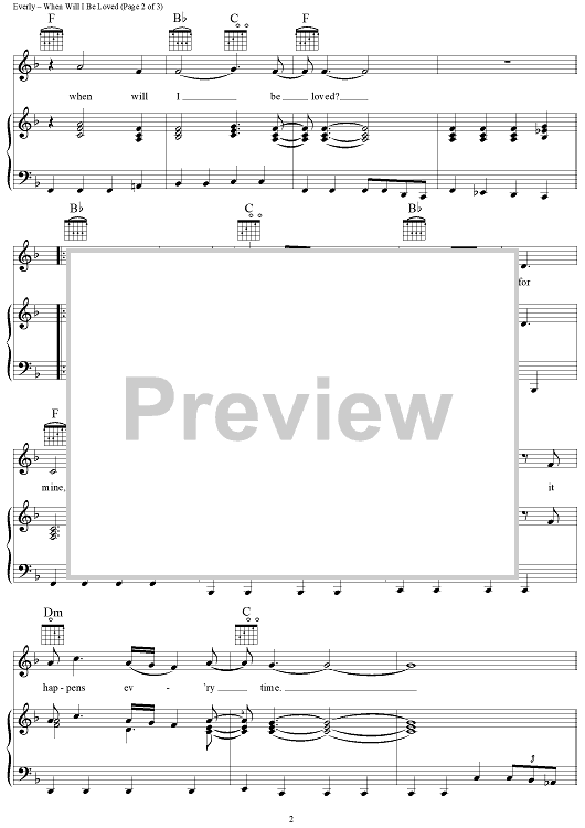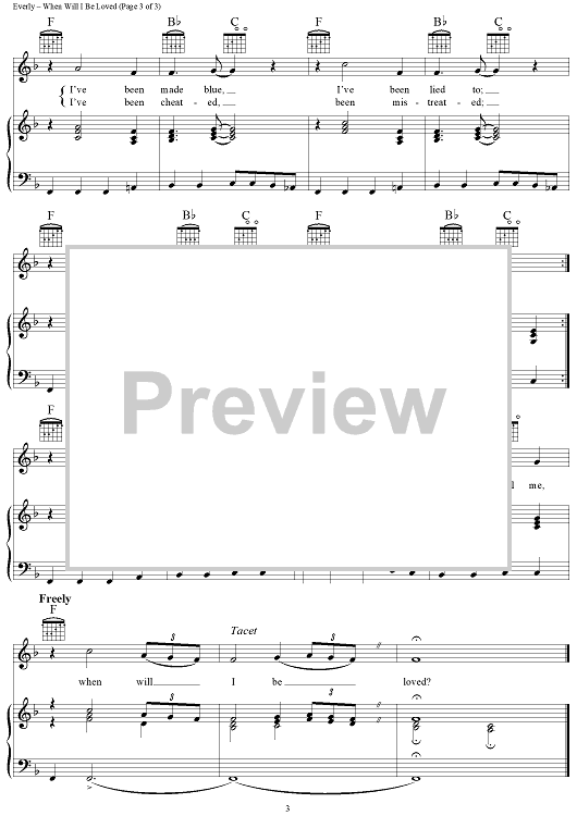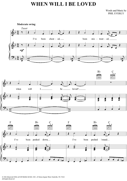Digital Sheet Music for When Will I Be Loved by Linda Ronstadt, Phil Everly, The Everly Brothers scored for Piano/Vocal/Chords; id:111382