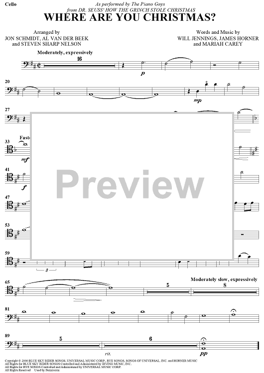 Digital Sheet Music for Where Are You Christmas? by Will Jennings, Mariah Carey, James Horner, Jon Schmidt, Al Van Der Beek, Steven Sharp Nelson, The Piano Guys scored for Cello and Piano; id:450037