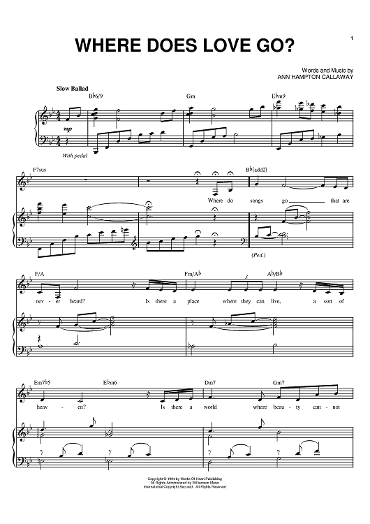 "Where Does Love Go?" Sheet Music by Ann Hampton Callaway