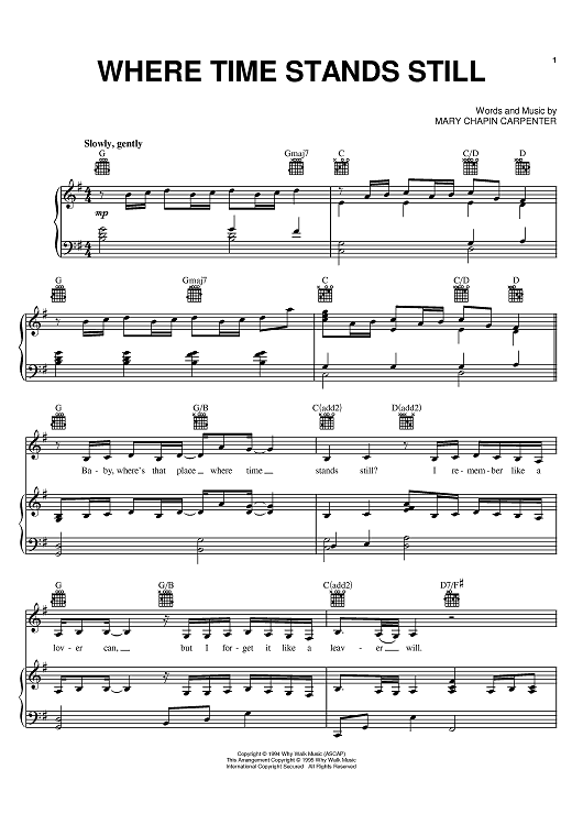 Digital Sheet Music for Where Time Stands Still by Mary Chapin Carpenter scored for Piano/Vocal/Chords; id:395456