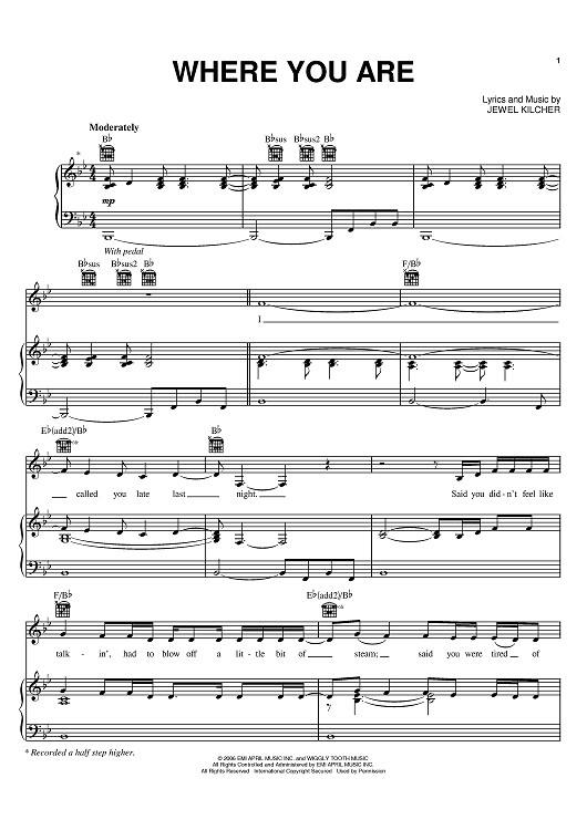 Digital Sheet Music for Where You Are by Jewel scored for Piano/Vocal/Chords; id:393403