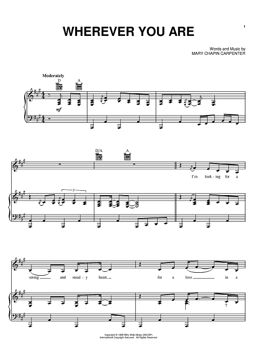Digital Sheet Music for Wherever You Are by Mary Chapin Carpenter scored for Piano/Vocal/Chords; id:395457