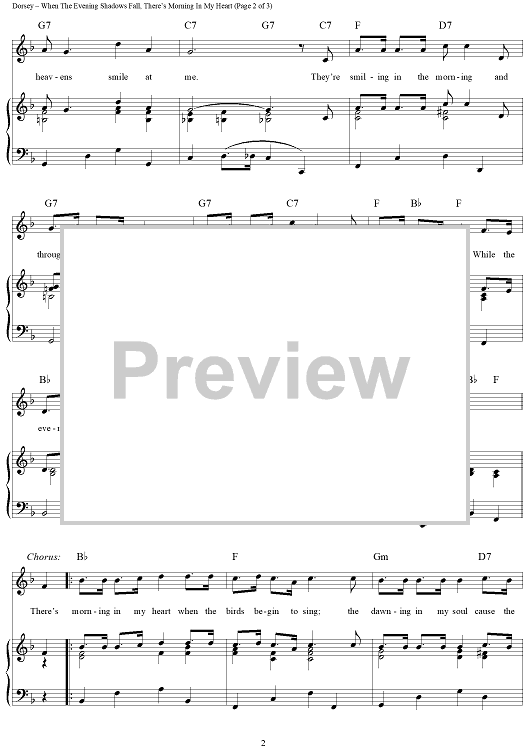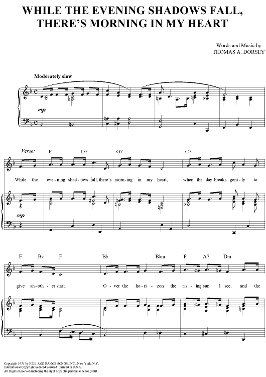 Digital Sheet Music for While The Evening Shadows Fall, There's Morning In My Heart by Thomas A. Dorsey scored for Piano/Vocal/Chords; id:363807