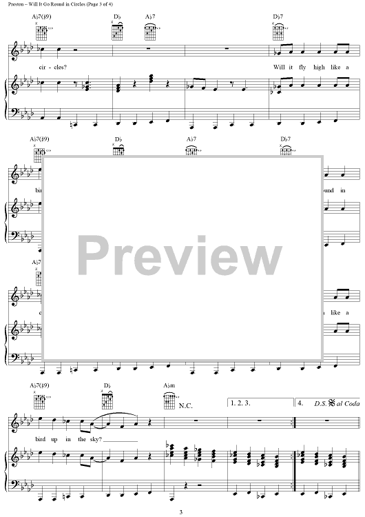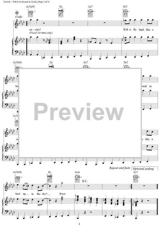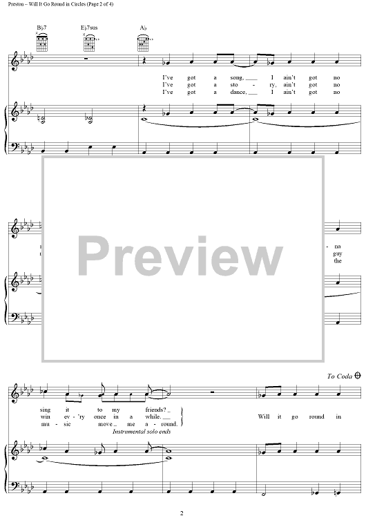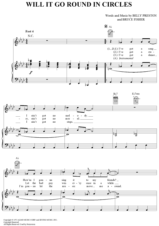 Digital Sheet Music for Will It Go Round In Circles by Billy Preston, Bruce Fisher scored for Piano/Vocal/Chords; id:367432