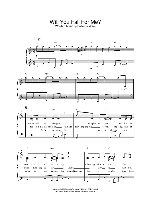 "Will You Fall For Me?" Sheet Music by Delta Goodrem