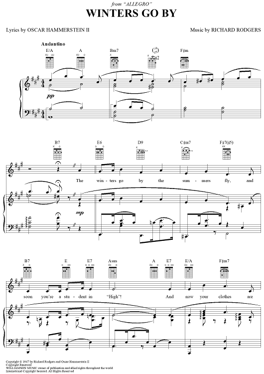 Digital Sheet Music for Winters Go By by Richard Rodgers, Oscar Hammerstein II scored for Piano/Vocal/Chords; id:367113
