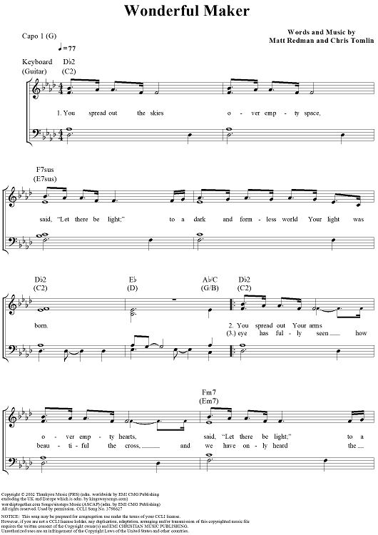 Digital Sheet Music for Wonderful Maker by Matt Redman, Chris Tomlin scored for Piano/Vocal/Chords; id:360943