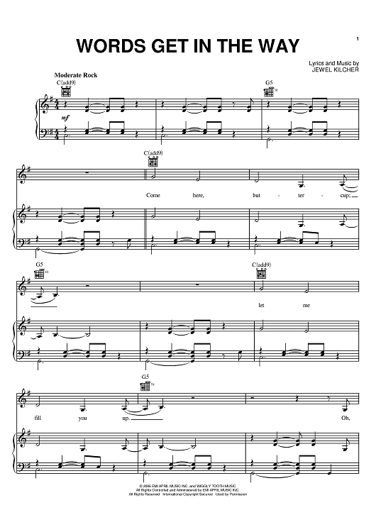 Digital Sheet Music for Words Get In The Way by Jewel scored for Piano/Vocal/Chords; id:393404