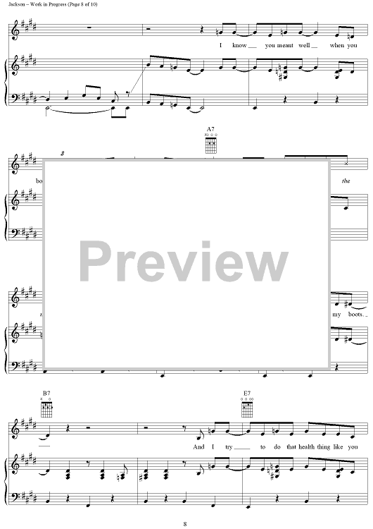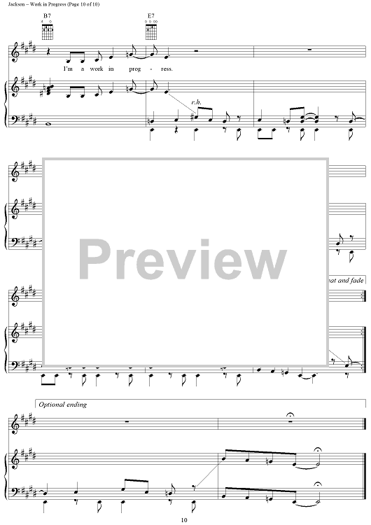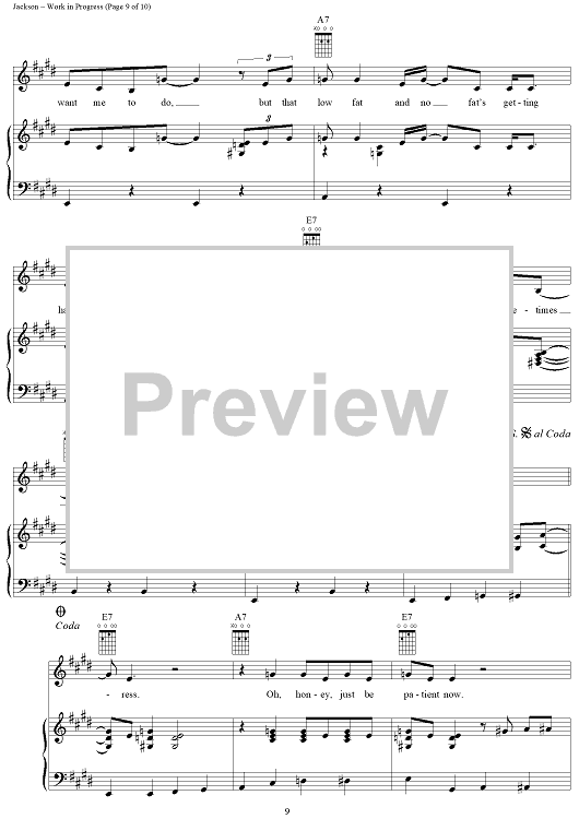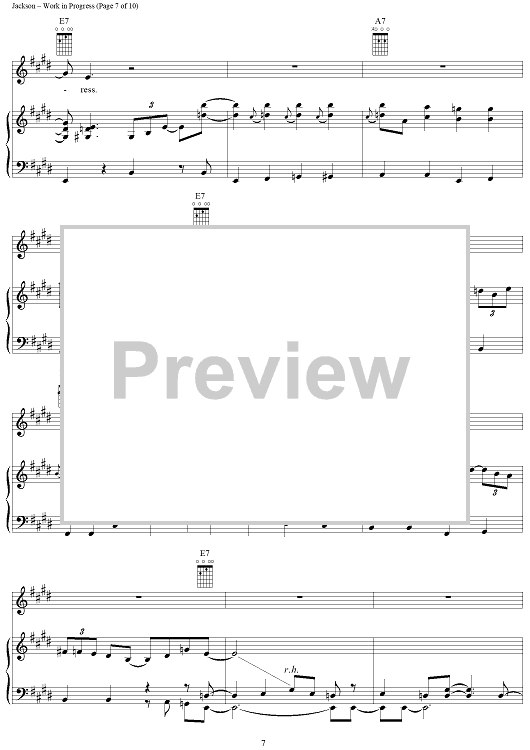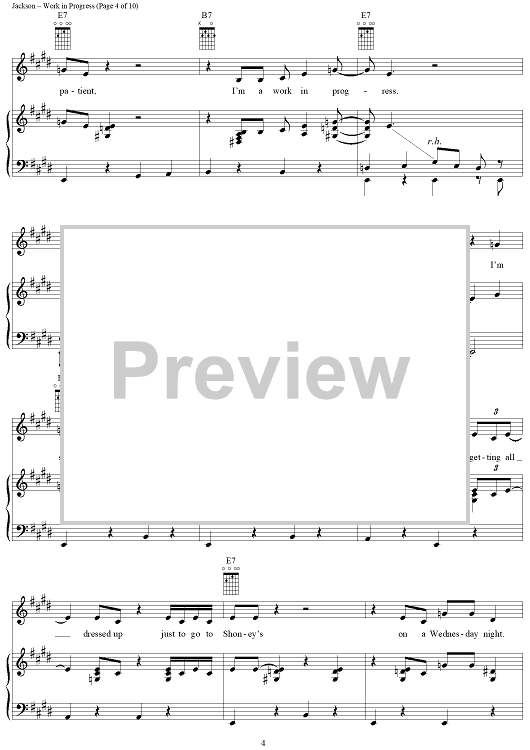 Digital Sheet Music for Work In Progress by Al Jackson Jr scored for Piano/Vocal/Chords; id:367856