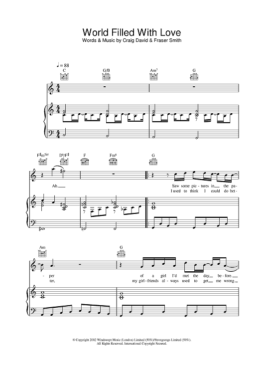 Digital Sheet Music for World Filled With Love by Craig David, Fraser T. Smith scored for Piano/Vocal/Chords; id:377904