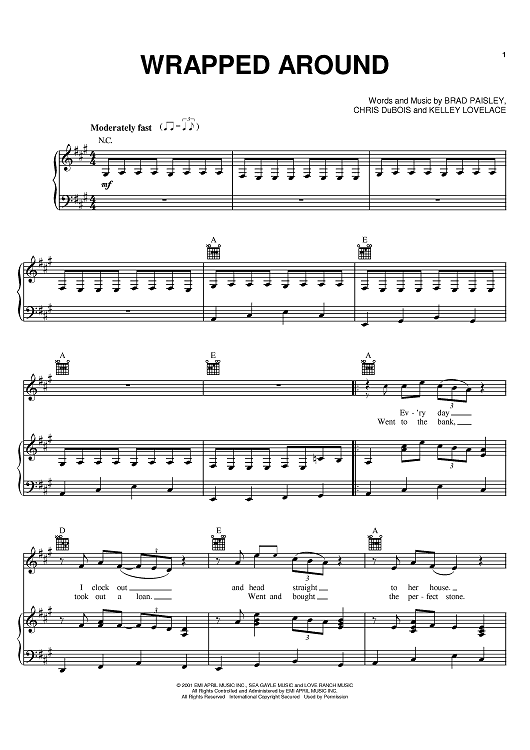 Digital Sheet Music for Wrapped Around by Kelley Lovelace, Chris Dubois, Brad Paisley scored for Piano/Vocal/Chords; id:368844
