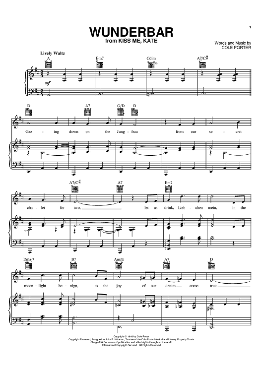 Digital Sheet Music for Wunderbar by Cole Porter scored for Piano/Vocal/Chords; id:387240