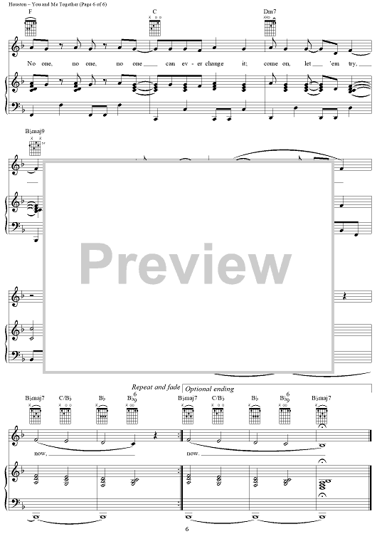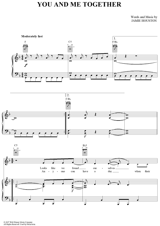 Digital Sheet Music for You and Me Together by Jamie Houston, Hannah Montana, Miley Cyrus scored for Piano/Vocal/Chords; id:366990