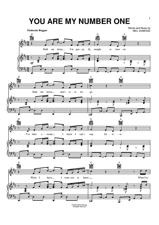 Digital Sheet Music for You Are My Number One by Neil Diamond, Smash Mouth scored for Piano/Vocal/Chords; id:371931