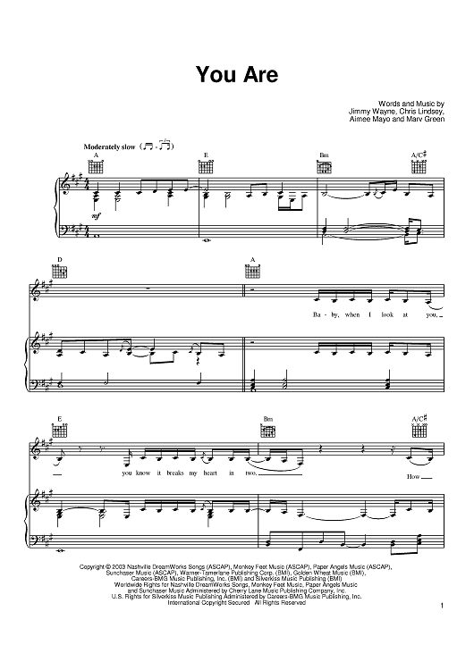 Digital Sheet Music for You Are by Aimee Mayo, Chris Lindsey, Jimmy Wayne scored for Piano/Vocal/Chords; id:375096