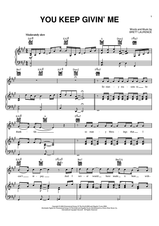 Digital Sheet Music for You Keep Givin' Me by Brian Littrell, Brett Laurence scored for Piano/Vocal/Chords; id:393577