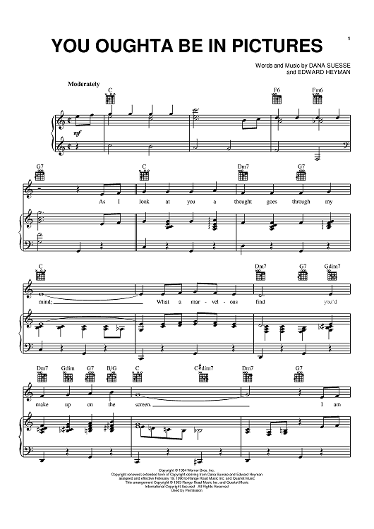 Digital Sheet Music for You Oughta Be In Pictures by Edward Heyman, Dana Suesse scored for Piano/Vocal/Chords; id:368158