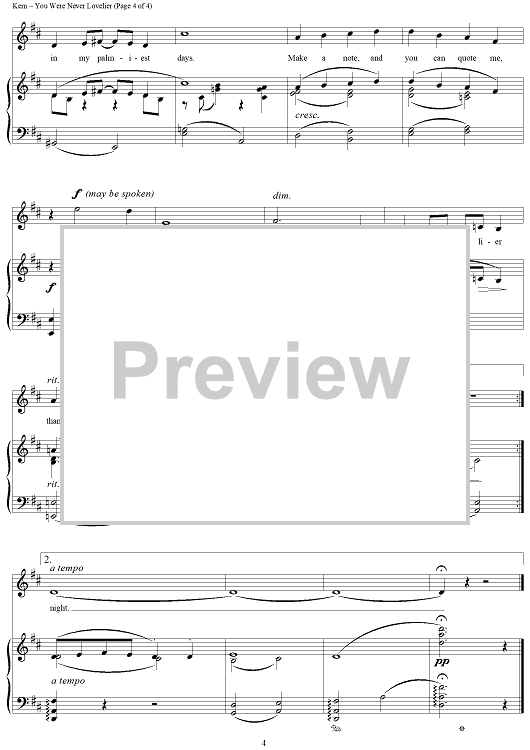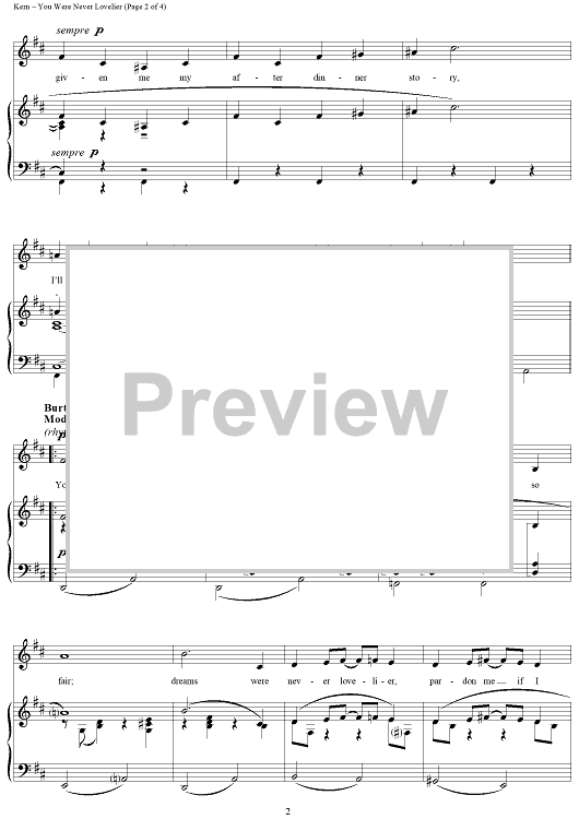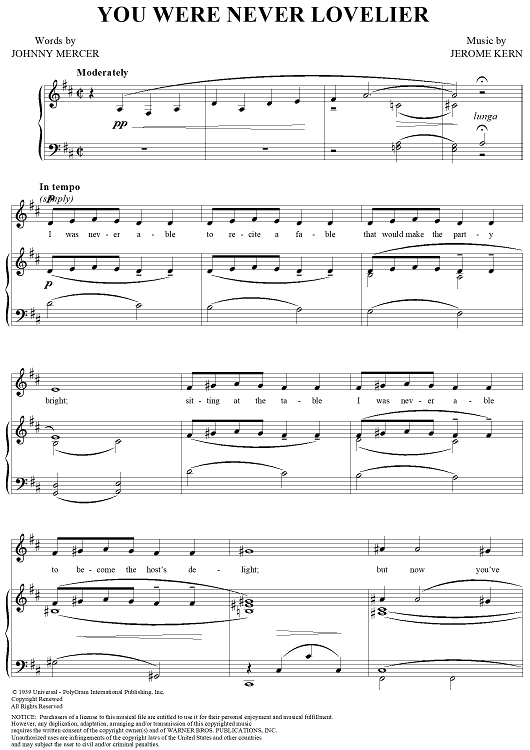Digital Sheet Music for You Were Never Loverlier by Johnny Mercer, Jerome Kern scored for Piano/Vocal/Chords; id:288079