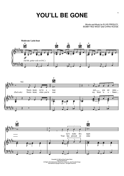 Digital Sheet Music for You'll Be Gone by Elvis Presley, Chris Hodge, Bobby Red West scored for Piano/Vocal/Chords; id:388044