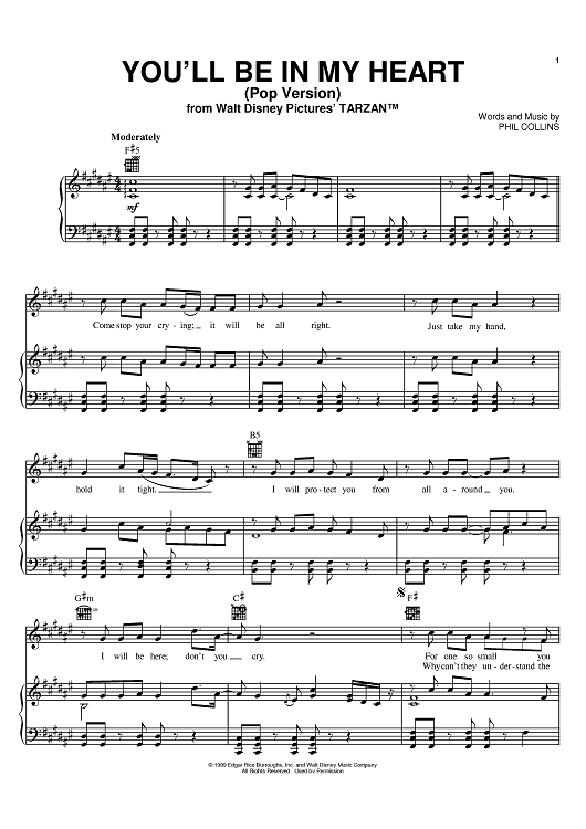 "You'll Be In My Heart (Pop Version)" Sheet Music by Phil Collins
