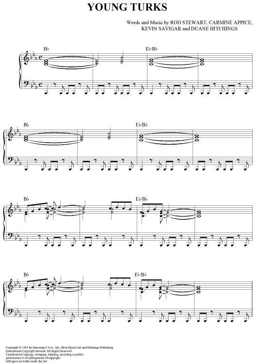 Digital Sheet Music for Young Turks by Rod Stewart, Carmine Appice, Duane Hitchings, Kevin Savigar scored for Piano/Vocal/Chords; id:364057