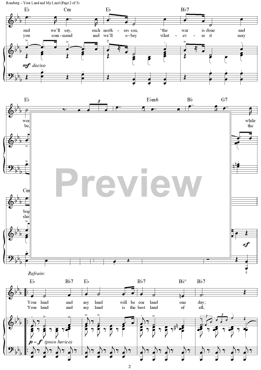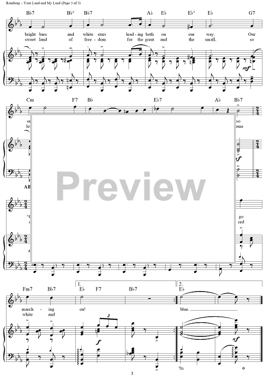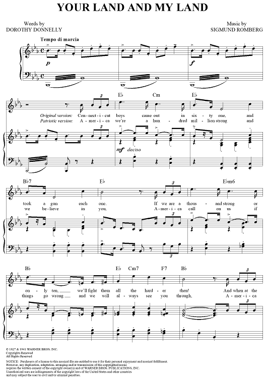 Digital Sheet Music for Your Land and My Land by Sigmund Romberg, Dorothy Donnelly scored for Piano/Vocal/Chords; id:359420